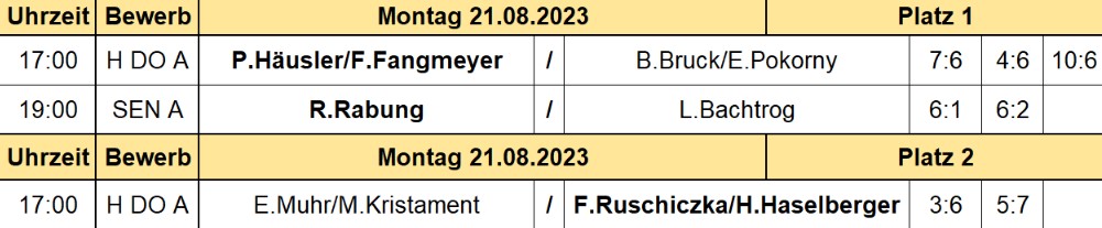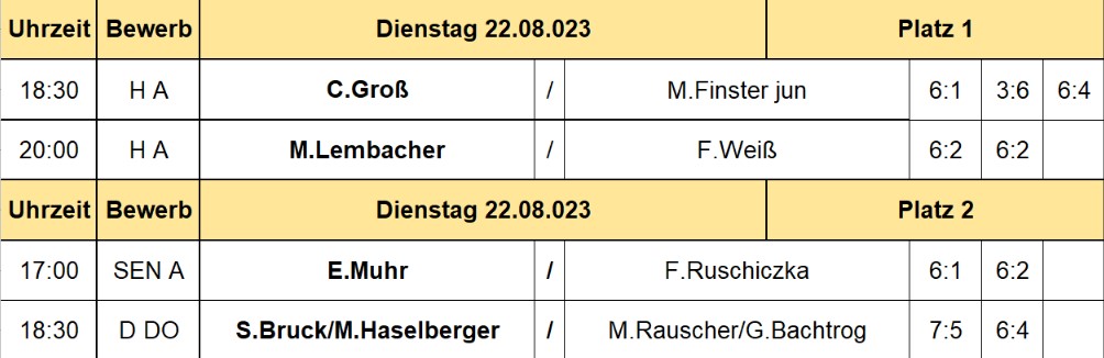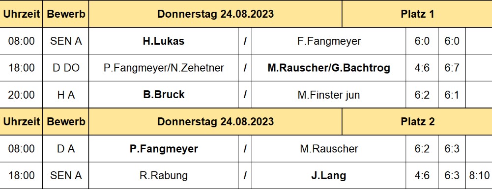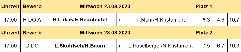 Spielplan 23.8.