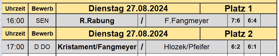 Spielplan Dienstag 27.08.2024